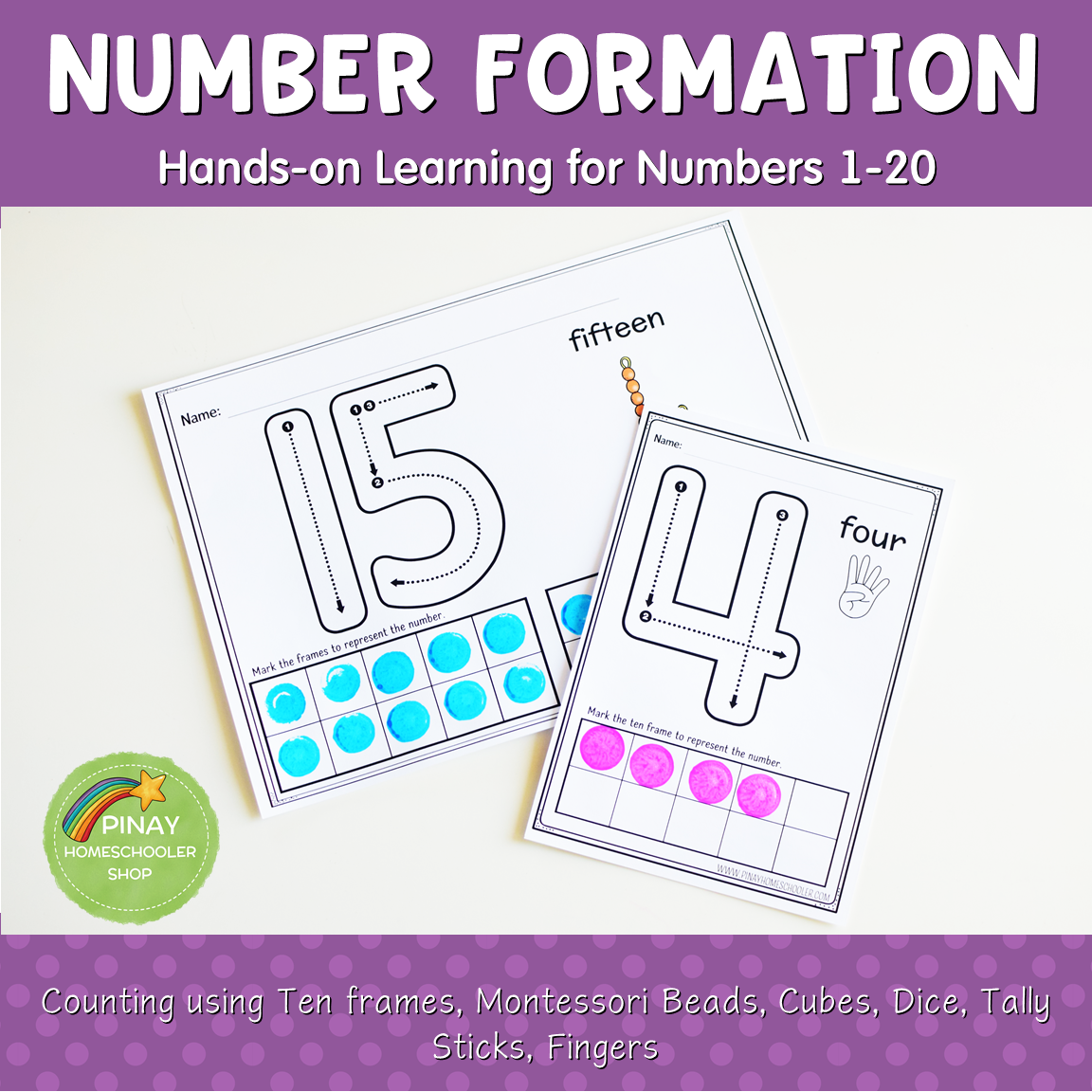This learning pack includes 6 sets of number formation and hands-on counting activities from numbers 1-20 and are perfect for younger kids learning to count and write numbers. BEST OF ALL, THIS IS NO PREP!