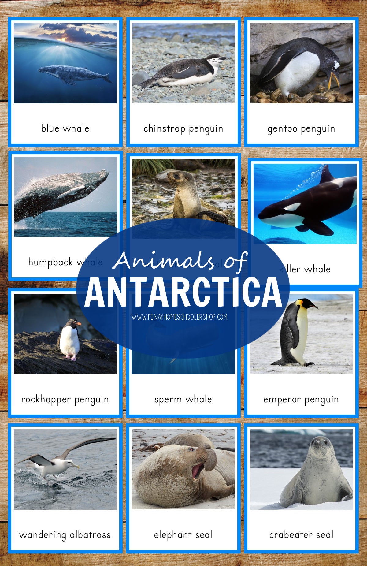 This set contains high-quality REAL images of animals: elephant seal, killer whale, chinstrap penguin, emperor penguin, adelie penguin, gentoo penguin, leopard seal, brown skua, antarctic krill, blue whale, weddel seal, rockhopper penguin, sperm whale, wandering albatross, humpback whale, crabeater seal, antarctic fur seal