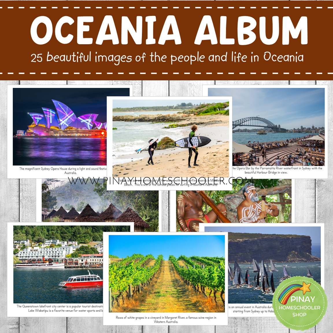 - 25 high-quality images of the people, tradition, and life in Australia/Oceania in a card format (card size is 5.25" x 7") with a description