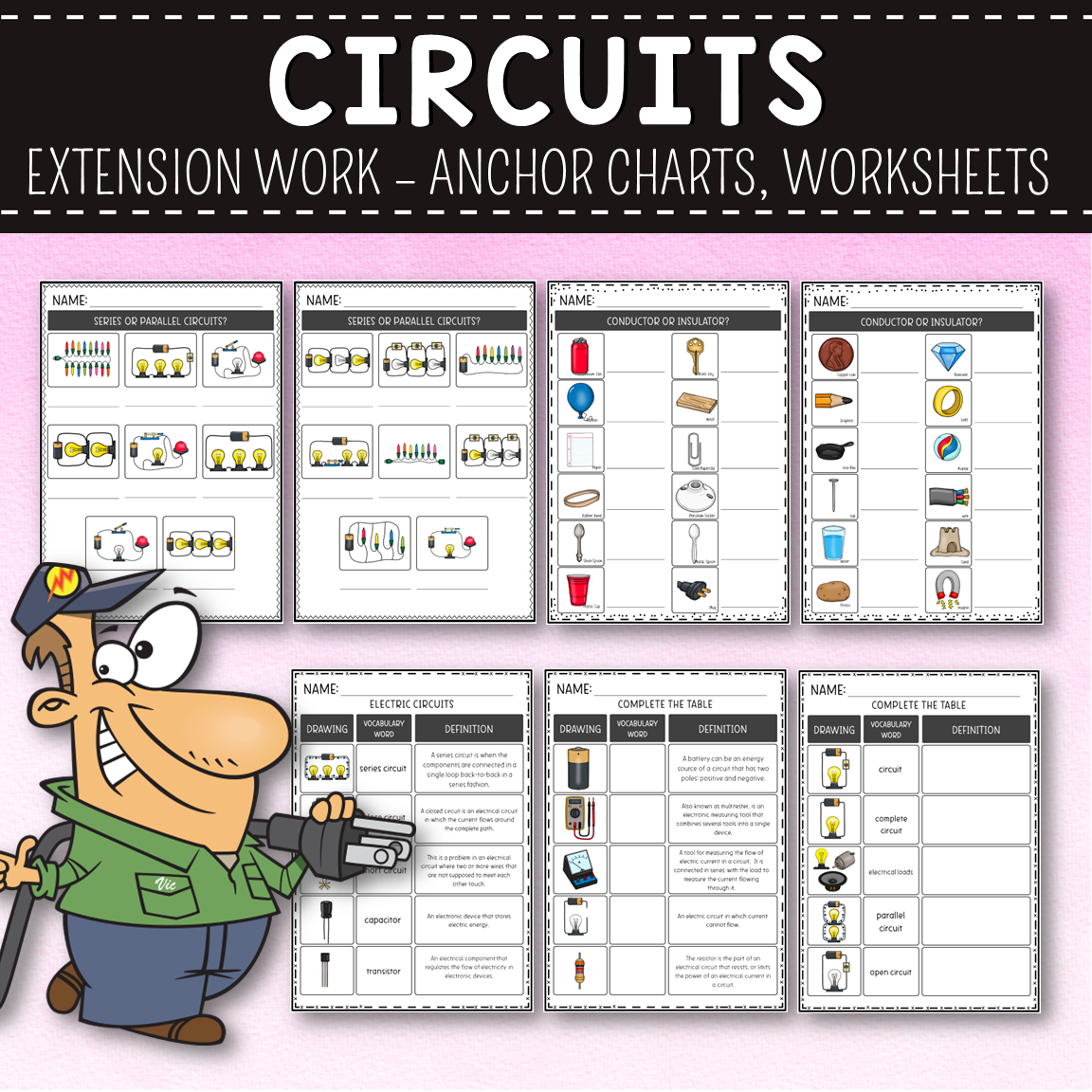 Circuits Extension Pack - Worksheets, Anchor Charts, Wordwall