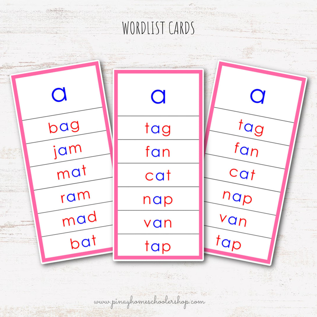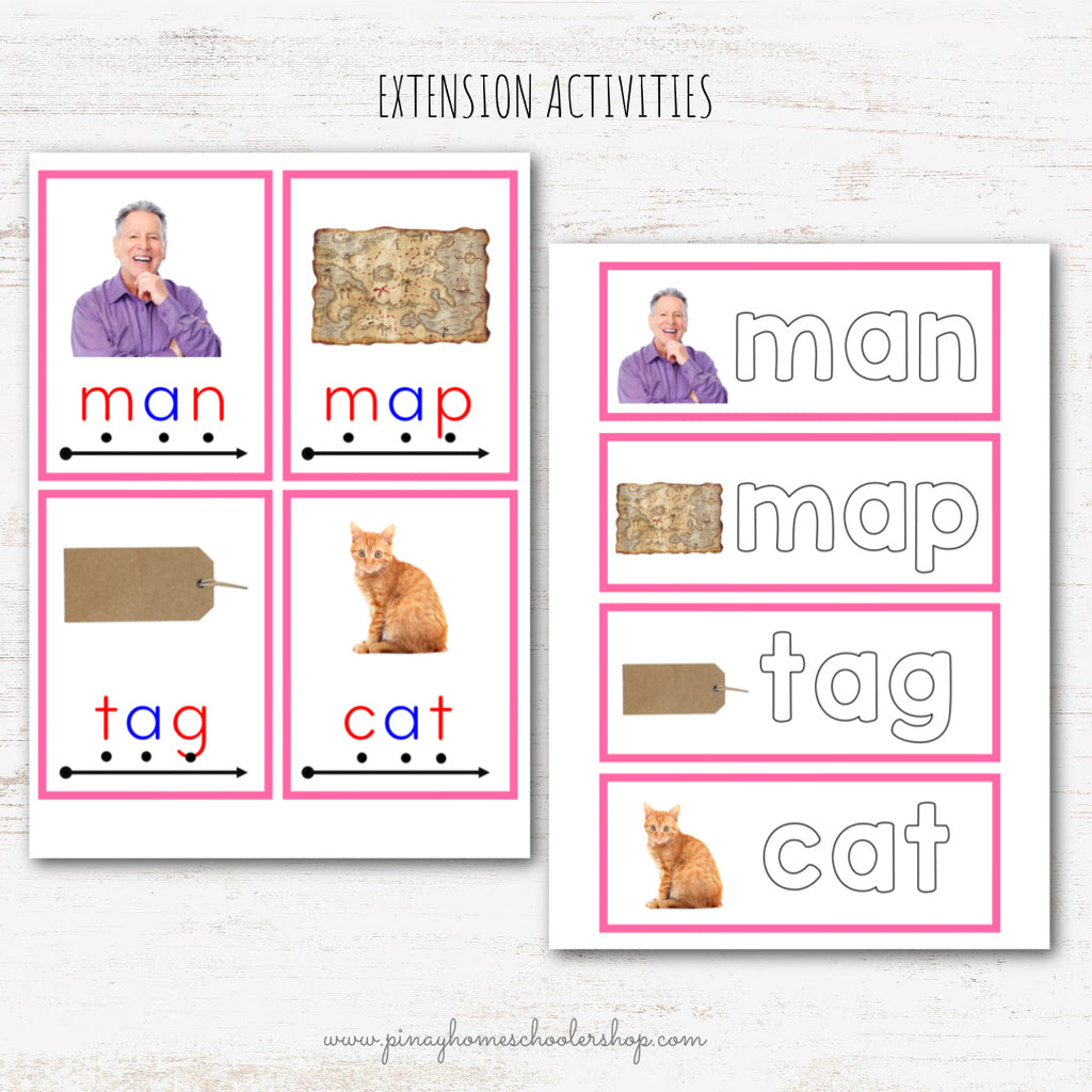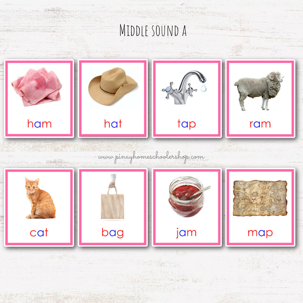 CVC Words Montessori Pink Series 3 Part Cards - Vowel A