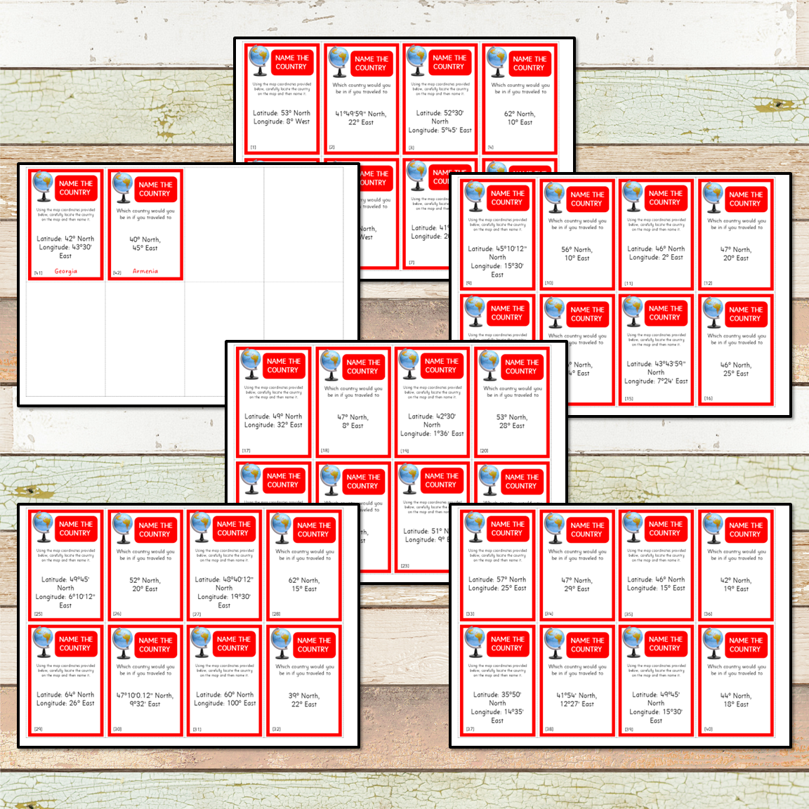 The printable pack features 42 task cards with coordinates of various European countries. Students will have the opportunity to locate these specific places on a map using the provided coordinates. Additionally, the pack includes two differentiated recording sheets and control cards to support the learning process. Furthermore, it comes with a map of Europe that includes lines of latitude and longitude, although users also have the option to use their map.