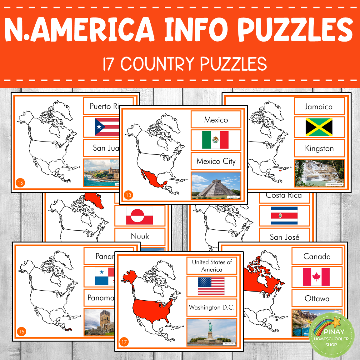 Montessori inspired sorting activity and facts puzzle. How well do you know the countries in North America? This activity pack is a great tool in enhancing your child's knowledge of geography and practising memorizing the 17 countries in North America and their locations.