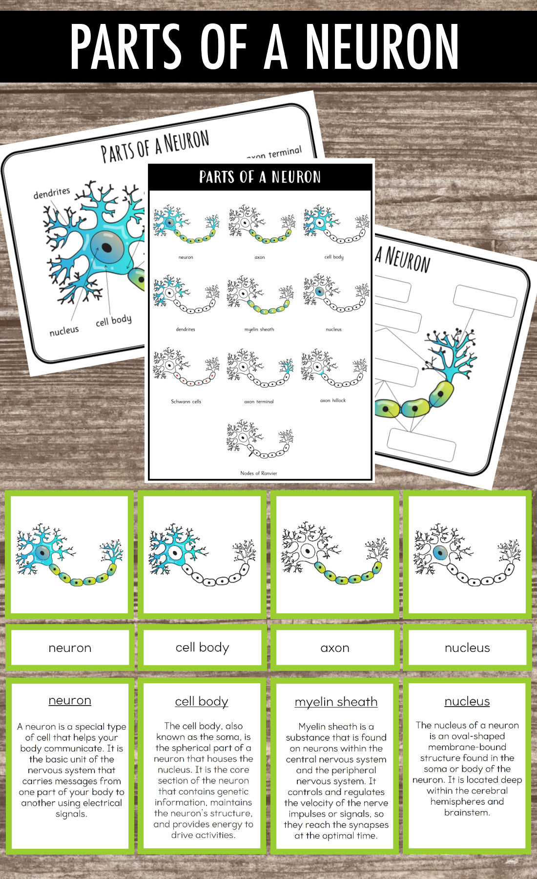 Discover the 10 essential parts of a human neuron with our Montessori-inspired learning material, designed for interactive and collaborative learning.